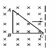 7.如图所示,在垂直纸面向里,磁感应强度为B的匀强磁场区域中有一个均匀导线制成的单匝直角三角形线框。现用外力使线框以恒定的速度v沿垂直磁场方向向右运动,运动中线框的AB边始终与磁场右边界平行,已知AB=BC=L,线框导线的总电阻为R。则线框离开磁场的过程中( )