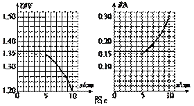 (2)第二组同学也利用图a的连接测量另一节干电池,初始时滑片P在最右端,但由于滑动变阻器某处发生断路,合上电键后发现滑片P向左滑过一段距离x后电流表有读数,于是该组同学分别作出了电压表读数U与x、电流表读数I与x的关系图,如图c所示,则根据图像可知,电池的电动势为 V,内阻为 Ω。