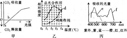 C.若图丙代表两类色素的吸收光谱,则f代表类胡萝卜素