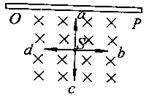 如图所示,OP为足够长的水平挡板,其下方有垂直纸面向里的匀强磁场,磁场范围足够大。S为一电子源,它可以向a、b、c、d四个垂直磁场的方向发射速率相同的电子,ac垂直于OP,bd平行于OP。不计电子重力,则最有可能击中挡板的是( )D