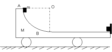 点A处由静止释放,沿着轨道运动恰好能与小车右端的弹簧接触,此时弹簧锁定瞬