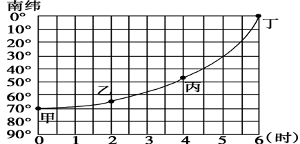 下图为某日观测到的同一经线上不同纬度的日出时刻(东十区区时)。此时,东十区区时为12时。 同一经线不同纬度日出时刻(东十区区时)图
