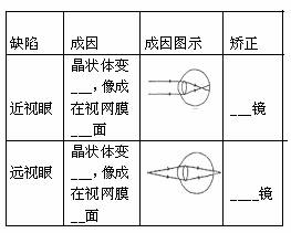 (1)眼睛的光学结构:眼睛的___相当于一个凸透镜,____相当于光屏,人的眼睛能看到物体,是该物体经过“凸透镜”在视网膜上形成的____像的结果。因此可以说人的眼睛就是一个透镜系统。![]()
