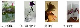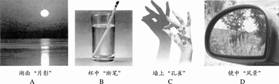 4.(2009·江苏省)如图3-44所示,下列光现象中,由于光的折射而形成的是 ( )