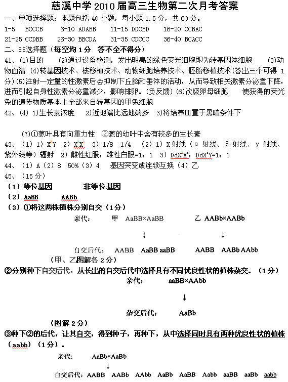 45.(15分)下图为某植物种群(雌雄同花)中甲植株的A基因和乙植株的B基因发生突变的过程。已知A基因和B基因是独立遗传的,请据图分析回答: