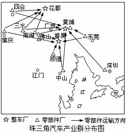 (2)珠江三角洲地区汽车零部件产业布局有何特点?这样布局的好处是什么?