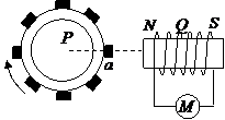 15、目前,有一种先进的汽车制动装置,可保证车轮在制动时不被抱死,使车轮仍有一定的滚动,如右图所示是这种装置的示意简图,铁齿轮P与车轮同步转动,右端有一个绕有线圈的磁铁Q,M是一个电流检测器,刹车时,磁铁与齿轮相互靠近而产生感应电流,这个电流经放大后控制制动器,由于