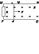 33、(16分)如图所示,MN、PQ为水平放置的足够长的平行光滑导电导轨,间距L为0.5m,导轨左端连接一个2Ω的电阻R,将一根质量为0.2kg的金属棒cd垂直地放在导轨上,且与导轨接触良好,金属棒的电阻r大小为1Ω,导轨的电阻不计,整个装置放在磁感应强度为1T的匀强磁场中,磁场方向垂直于导轨平面向下,现对金属棒施加一水平向右的拉力F,使棒从静止开始向右运动。当棒的速度达到3m/s后保持拉力的功率恒为3W,从此时开始计时,即此时t=0,已知从此时直至金属棒达到稳定速度的过程中电流通过电阻R做的功为2.2J。试解答以下问题: