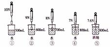 13.(2009·福建泉州)小刚同学用一个弹簧测力计、一个金属块、两个相同的烧杯(分别装有一定量的水和酒精),对浸在液体中的物体所受的浮力进行了探究。下图6-43表示探究过程及有关数据。