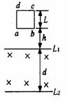 分别是水平向里的匀强磁场的边界,磁场的磁感应强度为B,正方形线框abcd边长为L(L<d)、质量为m。将线框在磁场上方高h处由静止开始释放,当ab边进入磁场时速度为