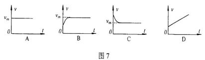 8.如图6所示,两根平行放置的竖直导电轨道处于匀强磁场中,轨道平面与磁场方向垂直。当接在轨道间的开关S断开时,让一根金属杆沿轨道下滑(下滑中金属杆始终与轨道保持垂直,且接触良好)。下滑一段时间后,闭合开关S。闭合开关后,金属沿轨道下滑的速度-时间图像不可能为( )