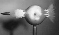 图示为高速摄影机拍摄到的子弹穿过苹果瞬间的照片。该照片经过放大后分析出,在曝光时间内,子弹影响前后错开的距离约为子弹长度的1%~2%。已知子弹飞行速度约为500m/s,因此可估算出这幅照片的曝光时间最接近 B(07北京卷)