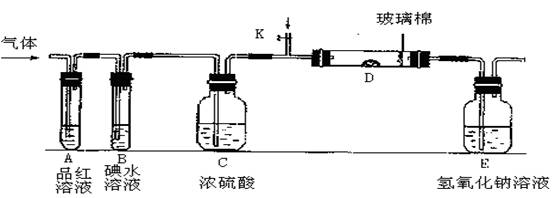 ①分别通入SO2和Cl2,在装置A中观察到的现象是否相同 (填“相同”或“不相同”);若装置D中装的是铁粉,当通入足量Cl2时观察到的现象为