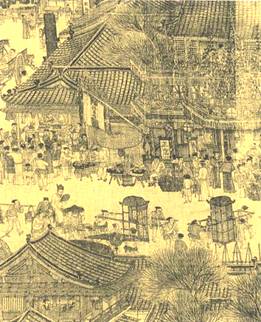 4.右图是北宋张择端的《清明上河图》(局部),它“记录”了北宋京都开封的繁华景象,以下对开封城描述正确的是