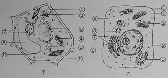 下图甲、乙分别是两类高等生物细胞的亚显微结构模式图,请据图回答: