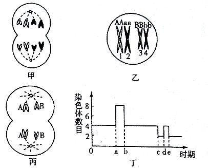 (2)丙图所示细胞名称为 ,其染色体变化对应丁图的 段。