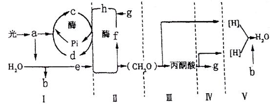 下面是某植物叶肉细胞中光合作用和细胞呼吸的物质变化示意图,其中I-V为牛理过程,a-h为物质名称,请回答: