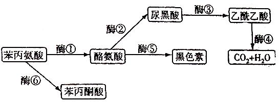 I. 苯丙酮尿症、白化病和尿黑酸症均为人类遗传病,其中苯丙酮尿症是由于苯丙氨酸代谢异常造成苯丙酮酸在血液中大量积累,使患者尿液中苯丙酮酸含量远高于正常人;尿黑酸症是由于尿黑酸在人体中积累使人尿液中含有尿黑酸,根据下图回答: