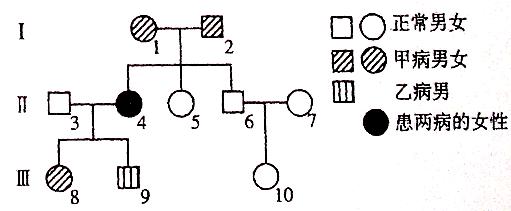 Ⅱ.下面是具有两种遗传病的家族系谱图,设甲病显性基因为A,隐性基因为a;乙病显性基因为B,隐性基因为b