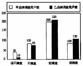 1.下图反映了被调查用户对甲、乙两种品牌空调售后服务的满意程度(以下称:用户满意程度),分为很不满意、不满意、较满意、很满意四个等级,并依次记为1分、2分、3分、4分。