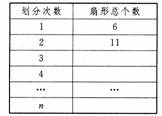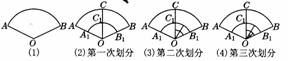 划分:如图⑶所示, 扇形C1OB1中,按上述划分方式继续划分,可以得到扇形的总数为11个;第三次戈分:如图(4)所示;…依次划分下去.