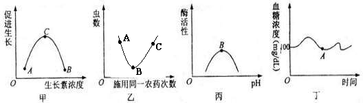 D.丁图曲线A点时,人的胰岛A细胞兴奋性增强,胰岛B细胞的兴奋性随后增强