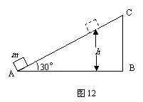 如图12所示,质量为m的物体(可视为质点)以某一速度从A点冲上倾角为30°的固定斜面,其运动的加速度为g,此物体在斜面上上升的最大高度为h,则在这个过程中物体( )。
