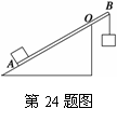 一足够长的斜面,最高点为O点。有一长为L =1.00 m的轻质木条AB,A端在斜面上,B端伸出斜面外。斜面与木条间的摩擦力足够大,以致木条不会在斜面上滑动。在木条A端固定一个质量为m=0.50 kg的重物(可视为质点),B端悬挂一个质量为M=2.00 kg的重物。若此时木条仅在最高点O与斜面有相互作用,则OA= m,O点对木条的作用力大小为 N。