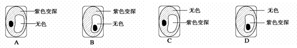 紫色洋葱表皮细胞发生质壁分离后,在显微镜下观察到的正确图示是:C