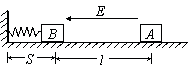 15.(20分)在绝缘水平面上放一质量m=2.0×10-3kg的带电滑块A,所带电荷量q=1.0×10-7C.在滑块A的左边l=0.3m处放置一个不带电的绝缘滑块B,质量M=4.0×10-3kg,B与一端连在竖直墙壁上的轻弹簧接触(不连接)且弹簧处于自然状态,弹簧原长S=0.05m.如图所示,在水平面上方空间加一水平向左的匀强电场,电场强度的大小为E=4.0×105N/C,滑块A由静止释放后向左滑动并与滑块B发生碰撞,设碰撞时间极短,碰撞后两滑块结合在一起共同运动并一起压缩弹簧至最短处(弹性限度内),此时弹性势能E0=3.2×10-3J,两滑块始终没有分开,两滑块的体积大小不计,与水平面间的动摩擦因数均为μ=0.5,g取10m/s2.求: