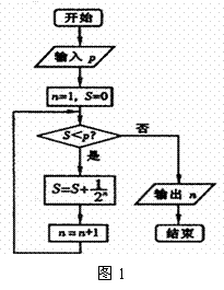 (2009闵行三中模拟)执行右边的程序框图1,若p=0.8,则输出的n= ![]()