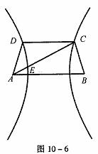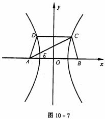 解 如图10-7,以AB的垂直平分线为y轴,直线AB为x轴,建立直角坐标系xOy,则CD⊥y轴。因为双曲线经过点C、D,且以A、B为焦点,由双曲线的对称性知C、D关于y轴对称。依题意,记A(-c,0),C(