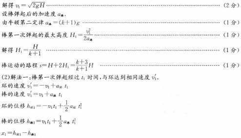 (k>1)断开轻绳,棒和环自由下落,棒与地面发生碰撞时,触地时间极短,无动