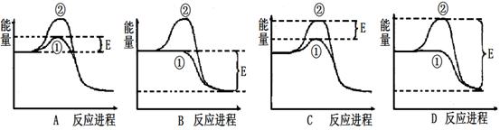 下列图中,①表示有酶催化的反应曲线,②表示没有酶催化的反应曲线,E表示酶降低的活化能。正确的图解是 C