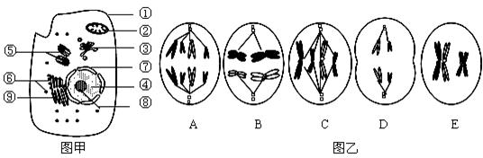 23.(12分)下图中,图甲是高等动物细胞亚显微结构示意图,图乙中的5个细胞是某种生物的细胞分裂示意图。请据图回答以下问题: