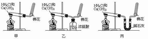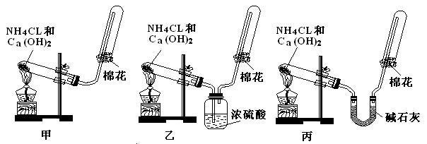 21.甲、乙、丙三位同学分别用如下三套实验装置及化学药品(其中碱石灰为固体氢氧化钠和生石灰的混合物)制取氨气。请你参与探究,并回答下列问题: