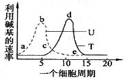 2、某科学家用放射性同位素分别标记的T和U培养基培养蚕豆根尖分尘区细胞,观察其有丝分裂,已知蚕豆有丝分裂周期为20小时,根据这两种碱基被细胞利用的速率绘制的曲线如图所示。下列对此结果的分析中,不正确的是