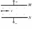 7、如图所示,M、N为一对水平放置的平行金属板,一带电粒子以平行于金属板方向的速度v穿过平行金属板。若在两板间存在互相垂直的匀强电场和匀强磁场,可使带电粒子的运动不发生偏转。若不计粒子所受的重力,则以下叙述正确的是( )