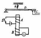 10、如图,是生产中常用的一种延时继电器的示意图.铁芯上有两个线圈A和B,线圈A跟电源连接,线圈B的两端接在一起,构成一个闭合电路.在断开开关S的时候,弹簧K并不能立即将衔铁D拉起,使触头C立即离开,而是过一段时间后触头C才能离开,因