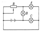 (D)当变阻器滑动片向左滑动时,A灯、C灯变亮,B灯变暗。