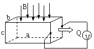 为监测某化工厂的污水排放量,技术人员在该厂的排污管末端安装了如图所示的流量计。该装置由绝缘材料制成,长、宽、高分别为a、b、c,左右两端开口。在垂直于上下底面方向加磁感应强度大小为B的匀强磁场,在前后两个内侧面分别固定有金属板作为电极与电压表相连。污水充满管口从左向右流经该装置时,电压表将显示两个电极间的电压U。若用Q表示污水流量(单位时间内排出的污水体积),下列说法中正确的是( )