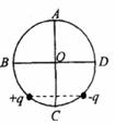 如图所示,AC、BN为圆的两条互相垂直的直径,圆心为O。将等电量的正、负点电荷放在圆周上它们的位置关于AC对称。要使圆心O处的电场强度为零,可在圆周上再放置一个适当电量的正点电荷+Q,则该点电荷+Q应放在( )