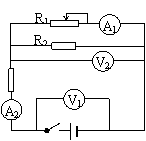 15、如图所示电路中A1、A2、V1、V2为理想电表,当R1的滑动触头向右移动时