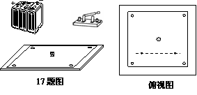 17、(8分)在“电场中等势线的描绘”实验中,用在导电纸上形成的电流场模拟静电场,描绘一个平面上的等势线。现有一位同学想模拟带负电的点电荷附近电场在一个平面上的等势线,他在木板上依次铺上白纸、复写纸、导电纸,并用图钉固定,然后在导电纸中央平放上一个小圆柱形电极A,如图所示。