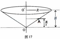 (2)如图17所示,一个竖直放置的圆锥筒可绕其中心OO′转动,筒内壁粗糙,筒口半径和筒高分别为R和H,筒内壁A点的高度为筒高的一半。内壁上有一质量为m的小物块。求