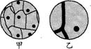 甲、乙两图是显微镜下观察到的两个视野,分别被放大了100倍和400倍,则观察时镜头的组合分别是( )