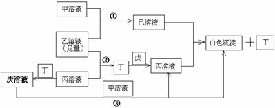 25:(8分)有常见A、B、C三种短周期元素,它们的原子序数逐渐增大,B元素原子最外层电子数是C元素原子最外层电子数的一半,A元素原子最外层电子数比B多一个。甲、乙、丙是3种含氧酸的钠盐,甲中含B元素,乙中含C元素,丙中含A元素,甲、丙溶液pH>7,乙溶液pH<7;丁为气体,戊为淡黄色固体。甲、乙、丙、丁、戊、己、庚七种物质之间的相互反应关系如图: