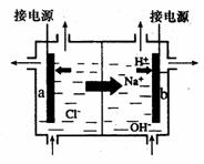 ③ 上述生产过程所需氯气和氢气均由氯碱厂提供,氯碱厂的基本设备是离子交换膜电解槽(如下图所示),其中进人阳极室的溶液是_____________________ , b 电极上的电极反应式是__________________________。