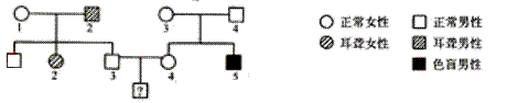 30. 已知人的红绿色盲属X染色体隐性遗传,先天性耳聋是常染色体隐性遗传(D对d完全显性)。下图中Ⅱ2 为色觉正常的耳聋患者,Ⅱ5为听觉正常的色盲患者。Ⅱ4(不携带d基因)和Ⅱ3婚后生下一个男孩,这个男孩患耳聋、色盲、既耳聋有色盲的可能性分别是 ( )