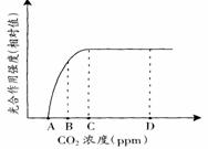 (4)C02浓度对植物光合作用强度影响的规律如右图。当外界C02浓度处于A时,植物叶片光合作用所固定的C02量与 相等;为提高封闭大棚内作物产量,棚内人工释放C02应控制在 (填图中字母)浓度为宜。